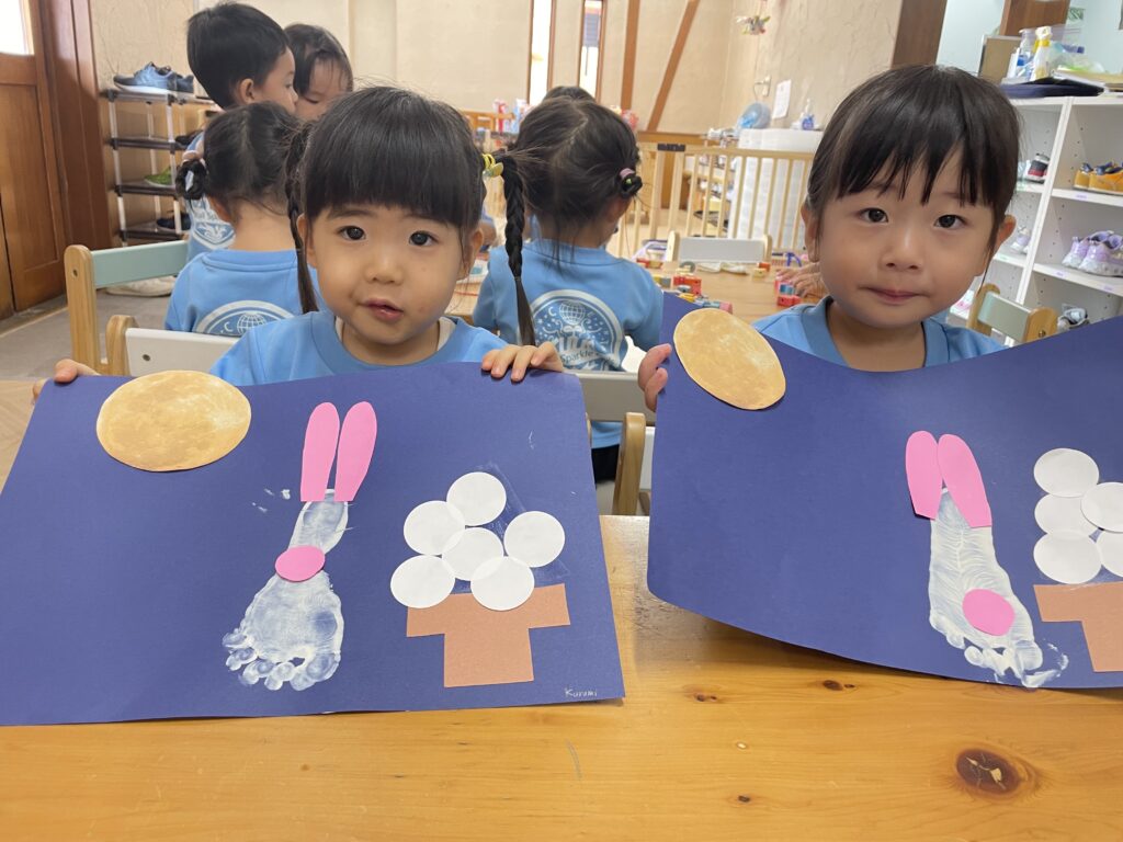 各クラスでお月見の話を聞き、かわいいクラフトをしました。
