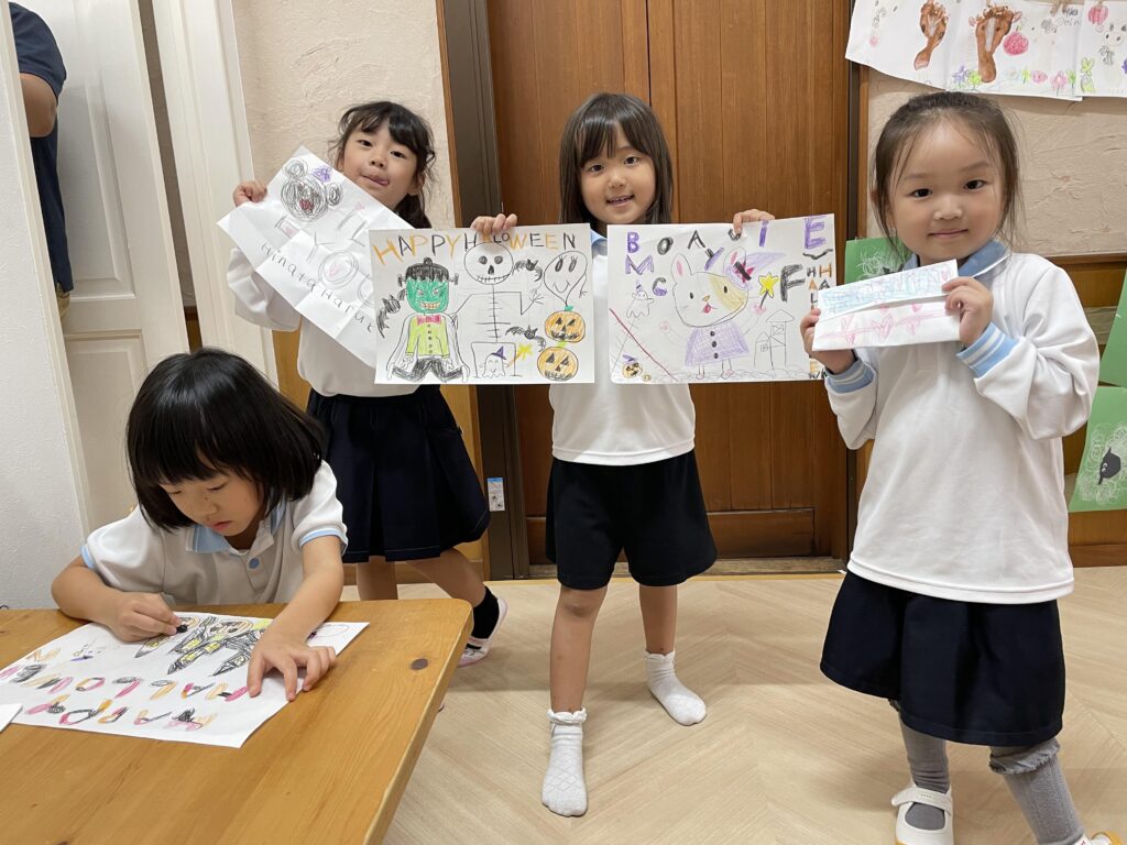 自由時間にはハロウィンの絵を描いたり、塗り絵をしたり、ハロウィンキャラクターの折り紙をしたりして過ごしています。