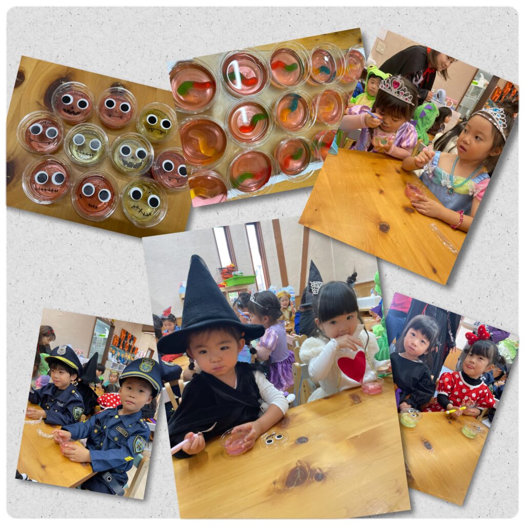 園では、ファッションショー・ゾンビダンス・ゲーム・トリックオアトリート・おやつタイムと盛りだくさんで、楽しいハロウィンイベントとなりました。