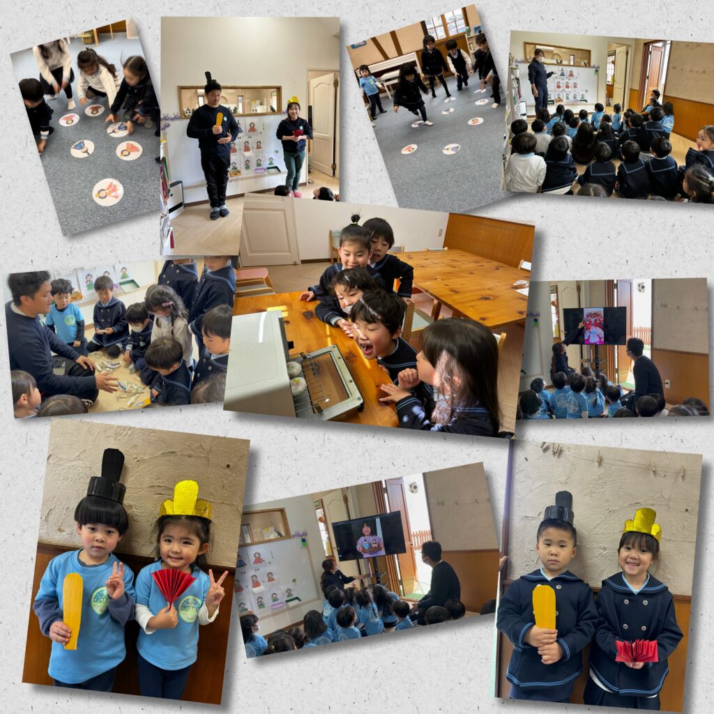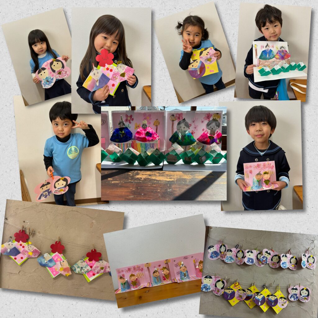 ひな祭りや雛人形のことを学び、みんなのお家にある雛人形の写真をお借りし、いろんな雛人形の種類があることを知りました。ガラスでできたものや、顔のないもの、大きなものや、立っているものなど、たくさんありましたね。